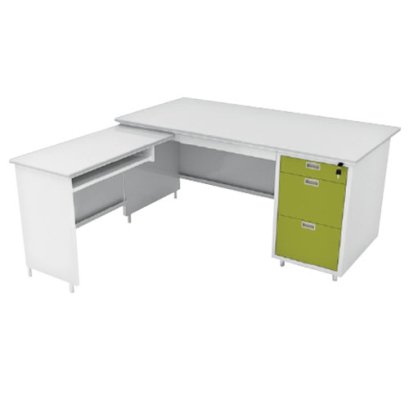 ขนาด(หลัก) W159.2 x D79.2 x H74 cm. (ข้าง) W90 x D44 x H70 cm. สีเขียว โต๊ะสำนักงานเหล็กราคารวมVAT7%