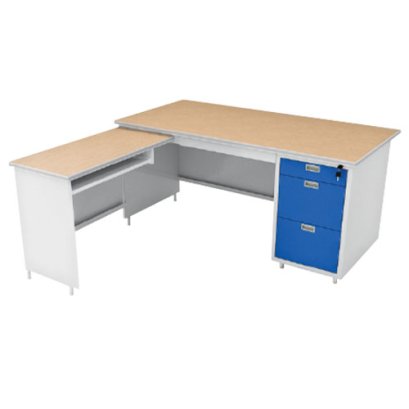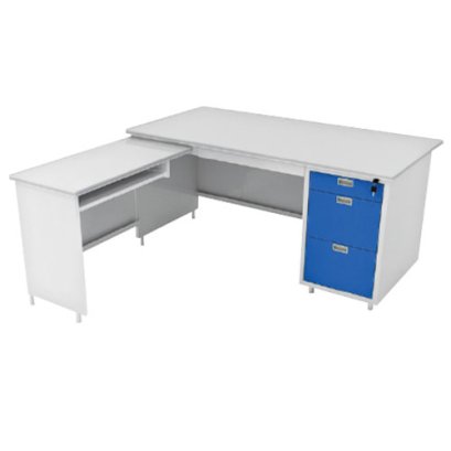 ขนาด(หลัก) W159.2 x D79.2 x H74 cm. (ข้าง) W90 x D44 x H70 cm. สีน้ำเงิน โต๊ะสำนักงานเหล็กราคารวมVAT7%