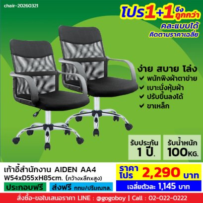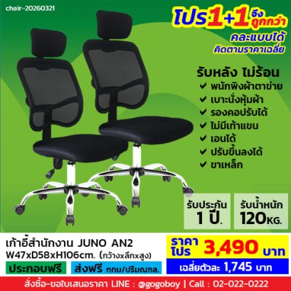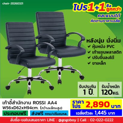 ขนาด W56 x D62 x H94 cm. สีดำ เก้าอี้ทำงานราคารวมVAT7%