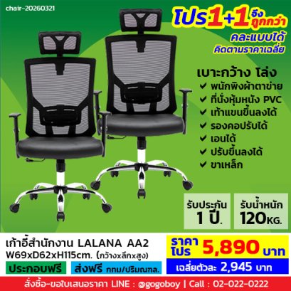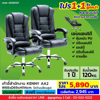 ขนาด W69 x D62 x H99.5 cm. สีดำ เก้าอี้ทำงานราคารวมVAT7%
