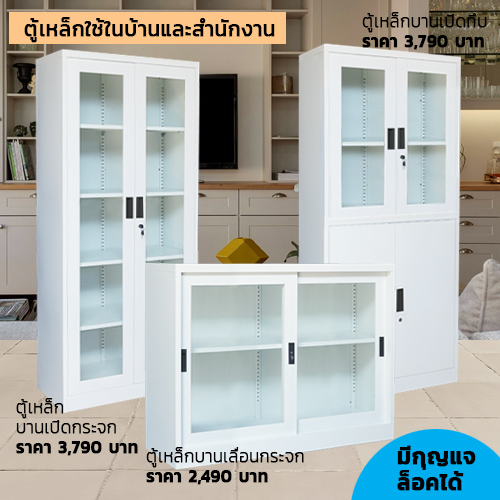 ขนาด W80 x D40 x H90 cm. สีขาว ตู้เหล็กราคารวมVAT7%