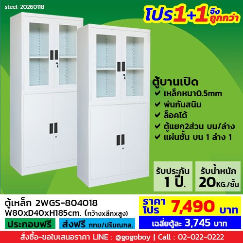 โปร 1+1 จึงถูกกว่า (1โปรได้2ตู้) ตู้เหล็กแบบผสม LECCA เล็คก้า รุ่น 2WGS-804018