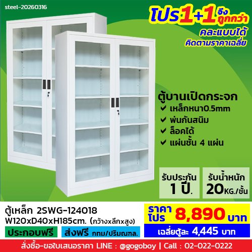 โปร 1+1 จึงถูกกว่า (1โปรได้2ตู้) ตู้เหล็ก 2 บานเปิดกระจก LECCA เล็คก้า รุ่น 2SWG-124018