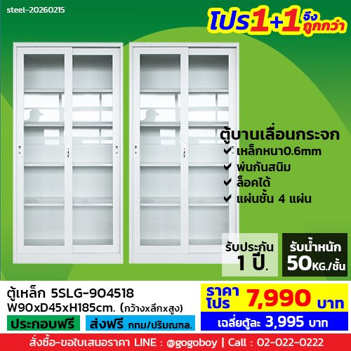 โปร 1+1 จึงถูกกว่า (1โปรได้2ตู้) ตู้เหล็กบานเลื่อนกระจกสูง LECCA รุ่น 5SLG-904518