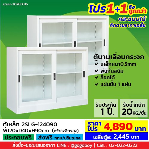โปร 1+1 จึงถูกกว่า (1โปรได้2ตู้) ตู้เหล็กบานเลื่อนกระจก 4 ฟุต LECCA เล็คก้า รุ่น 2SLG-124090