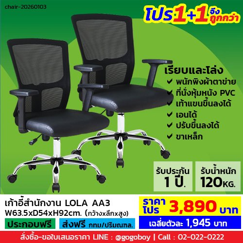 โปร 1+1 จึงถูกกว่า (1โปรได้2ตัว) เก้าอี้สำนักงาน LECCA เล็คก้า รุ่น โลล่า LOLA AA3