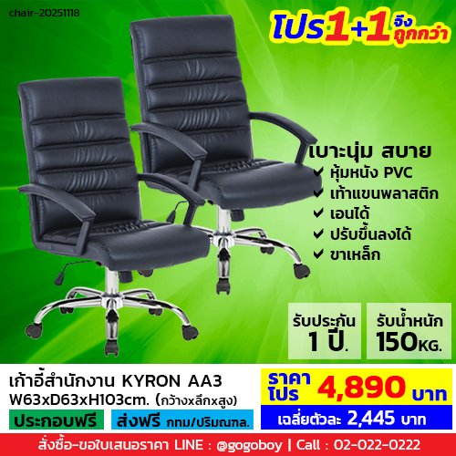 โปร 1+1 จึงถูกกว่า (1โปรได้2ตัว) เก้าอี้สำนักงาน LECCA รุ่น คีรอน KYRON AA3