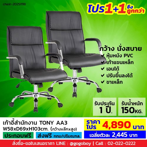 โปร 1+1 จึงถูกกว่า (1โปรได้2ตัว) เก้าอี้สำนักงาน LECCA รุ่น โทนี่ TONY AA3