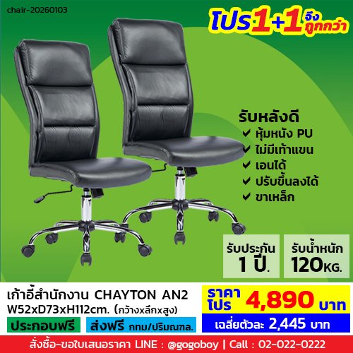 โปร 1+1 จึงถูกกว่า (1โปรได้2ตัว) เก้าอี้สำนักงาน ไม่มีเท้าแขน LECCA เล็คก้า รุ่น เชย์ตั้น CHAYTON AN2