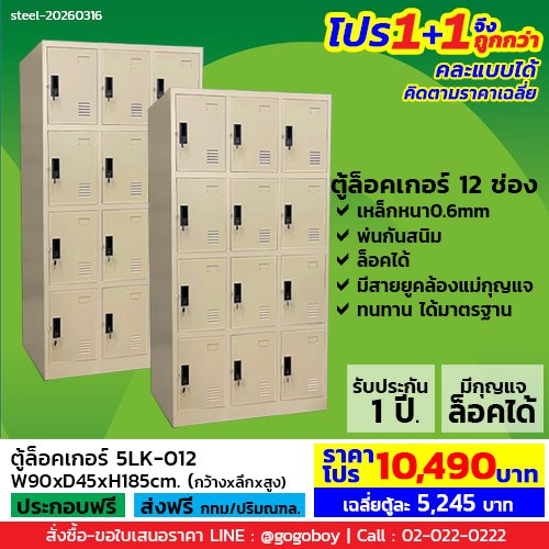 ตู้ล็อคเกอร์ 12ช่อง มีกุญแจล็อค รุ่น 5LK-012