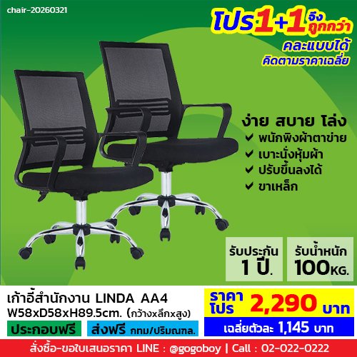 โปร 1+1 จึงถูกกว่า (1โปรได้2ตัว) เก้าอี้สำนักงาน LECCA เล็คก้า รุ่น ลินดา LINDA AA4