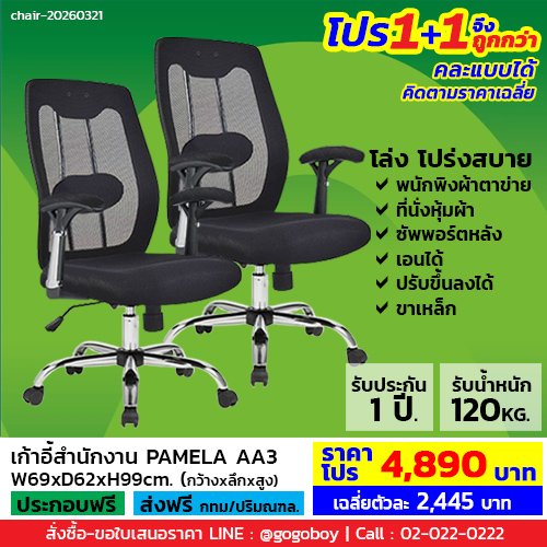 โปร 1+1 จึงถูกกว่า (1โปรได้2ตัว) เก้าอี้สำนักงาน LECCA เล็คก้า รุ่น พาเมล่า PAMELA AA3