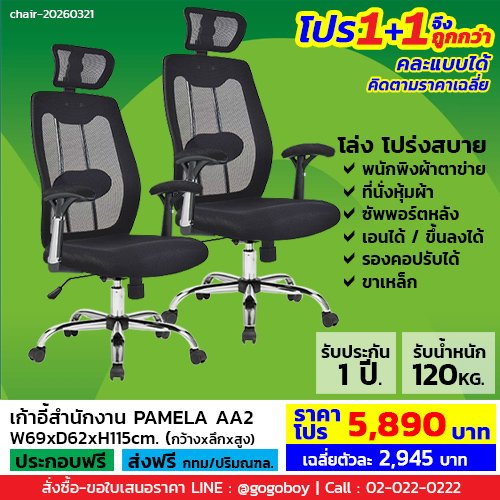 โปร 1+1 จึงถูกกว่า (1โปรได้2ตัว) เก้าอี้ผู้บริหารเพื่อสุขภาพ LECCA เล็คก้า รุ่น พาเมล่า PAMELA AA2